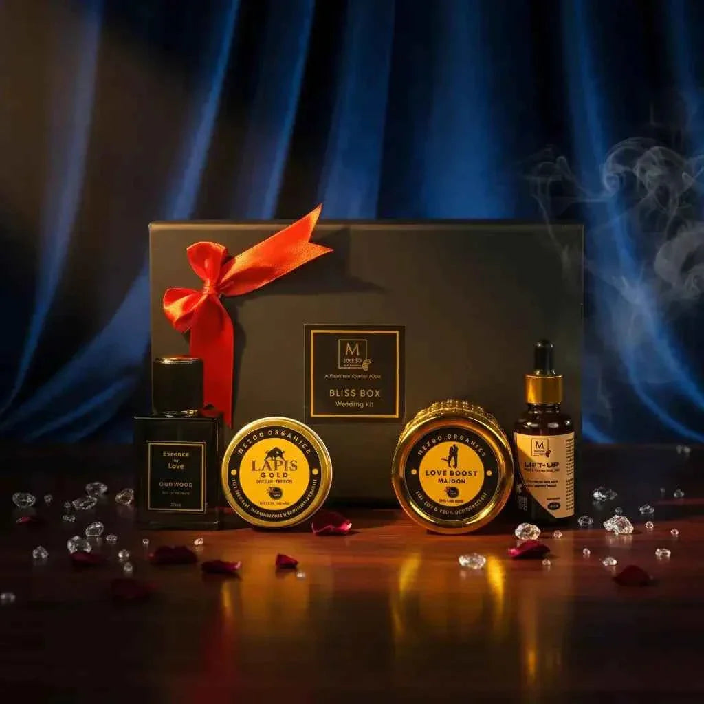 Try our wedding bliss box. A wedding is not just about two souls coming together it’s about beginning a new journey with confidence, passion, and energy. To make your special moments unforgettable, Meezo Organics presents the Bliss Box (Wedding Kit)  a complete herbal solution designed for male vitality, intimacy, and wellness.